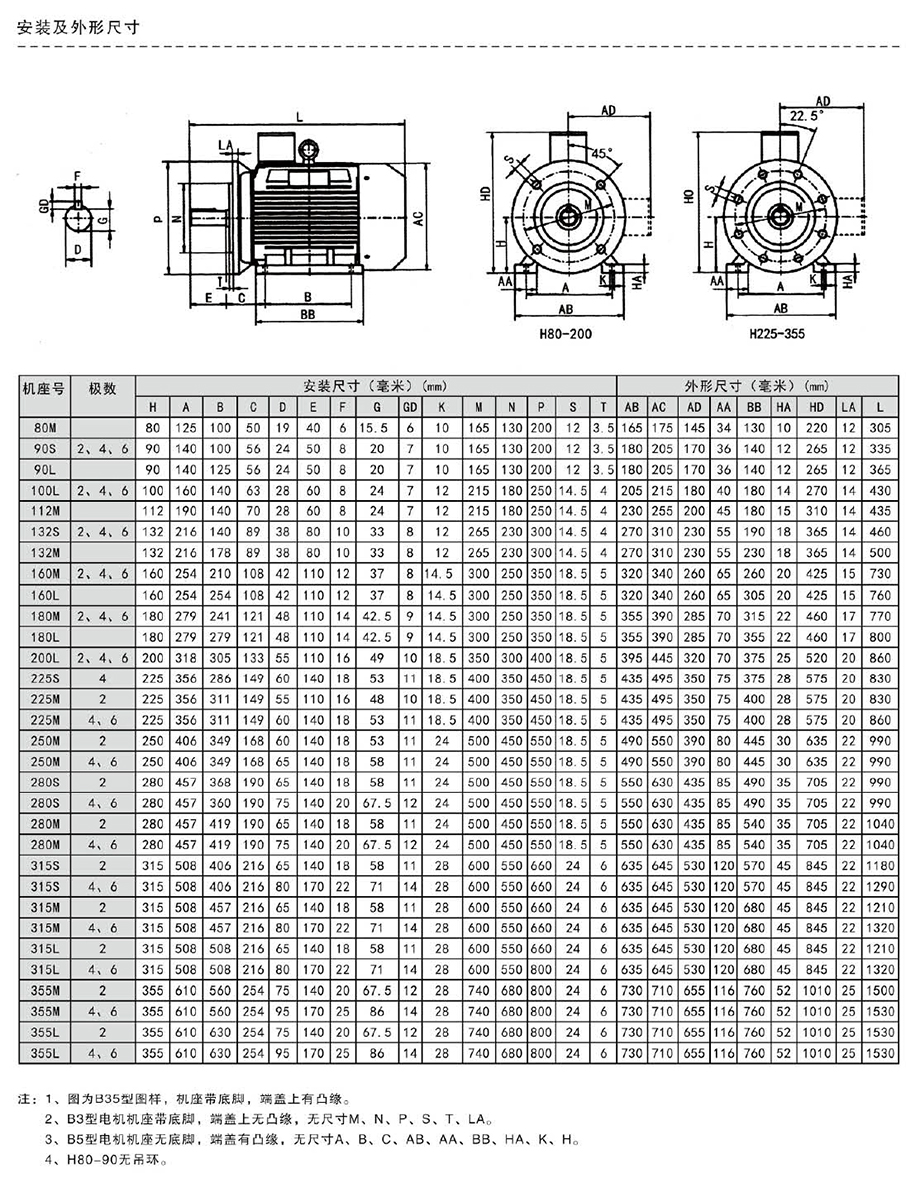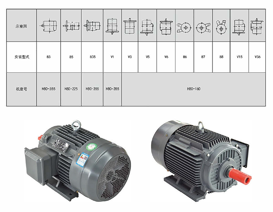 YE3系列(IP55)超高效率三相異步電動機(機座號80 ~ 355)的安裝尺寸和功率等級符合IEC國際標準,